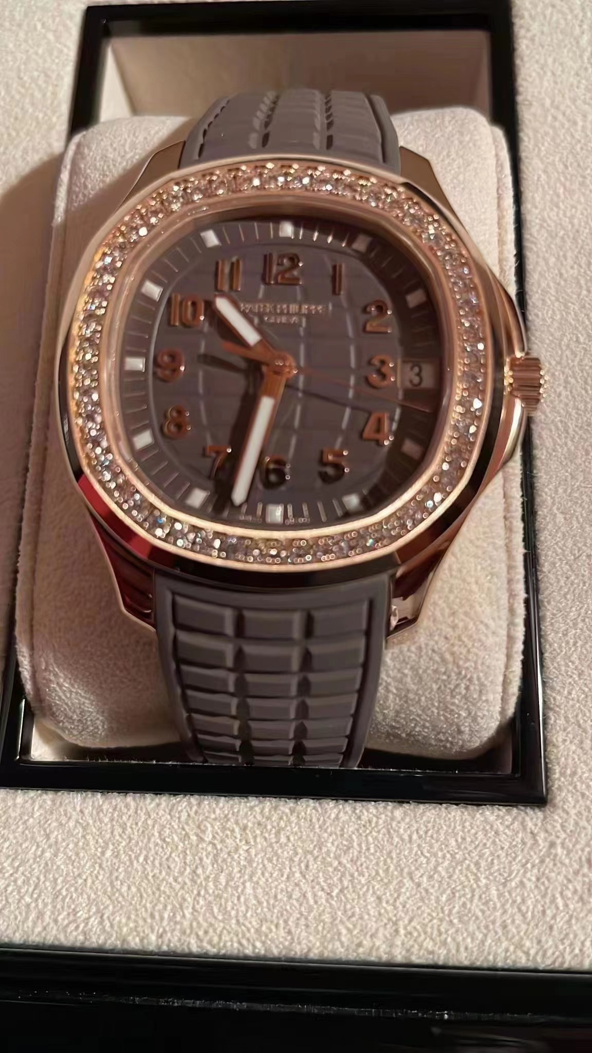 表盘材质:灰褐色表盘,饰有Aquanaut浮雕图案,搭配金质立体字块。