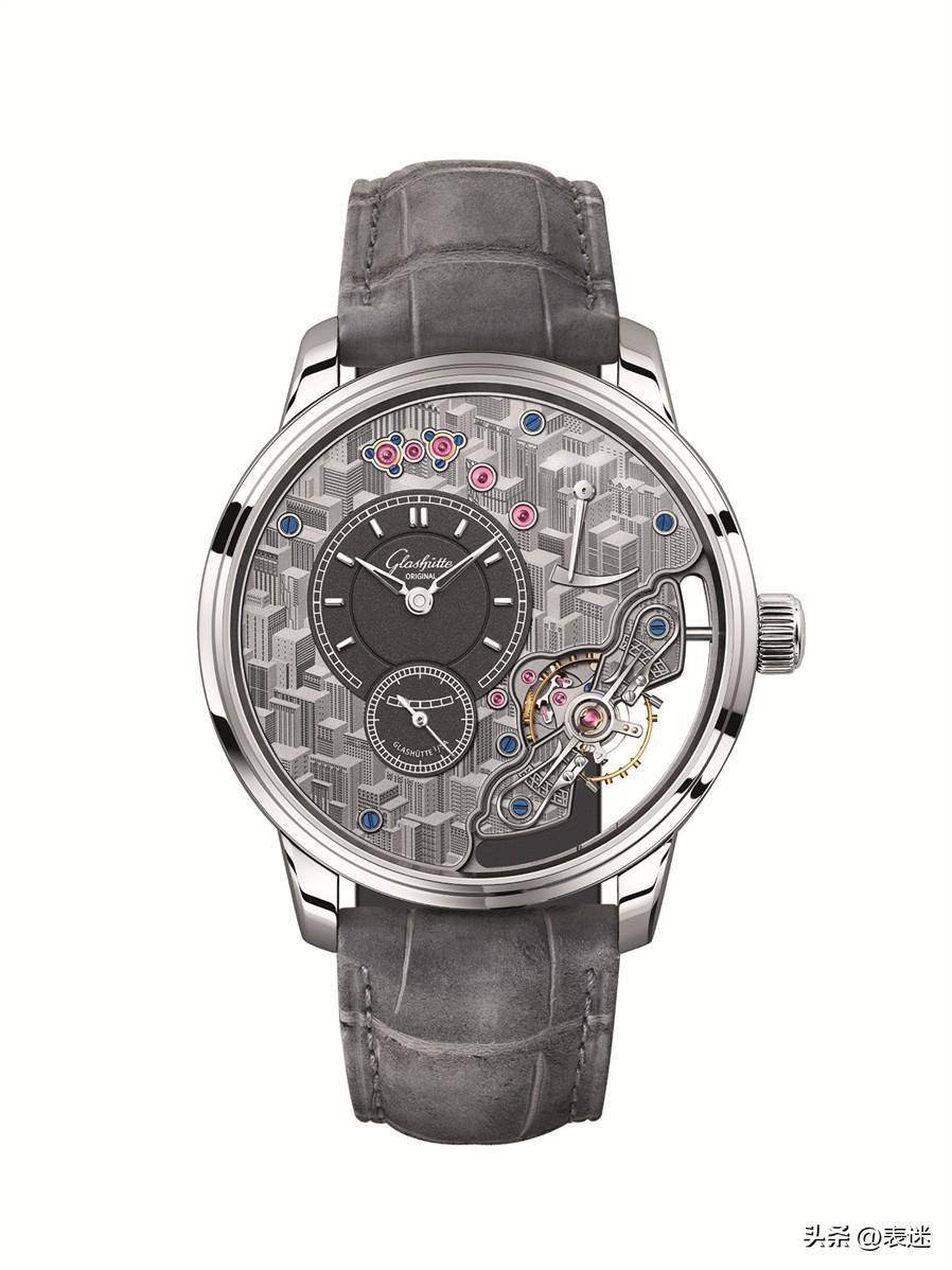 PanoInverse Limited Edition偏心机芯倒置腕表-限量款 本款腕表搭载42毫米抛光/缎面磨砂铂金表壳,一条精美的激光雕刻黑色镀铑天际线贯穿四分之三夹板和蝴蝶桥板表面,并延续至腕表背面。蓝宝石水晶玻璃表镜和表底盖以及部分镂空的机芯设计给腕表鉴赏家们呈现了一场街头艺术的视觉盛宴。Calibre 66-12型手动上链机芯以4赫兹的频率稳定振动,运行时间长达41小时,螺丝固定式黄金套筒、红宝石轴承、蓝钢螺丝、倒角边缘、抛光钢质零件等充分体现格拉苏蒂原创的德系高级制表特征。