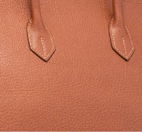 成年公牛皮(颈部皮),皮的表面类似荔枝纹,较硬,颗粒较大,容易保持形状,因为不怕刮痕又好清理,所以是爱马仕最常见也会是最受欢迎的一种皮质。