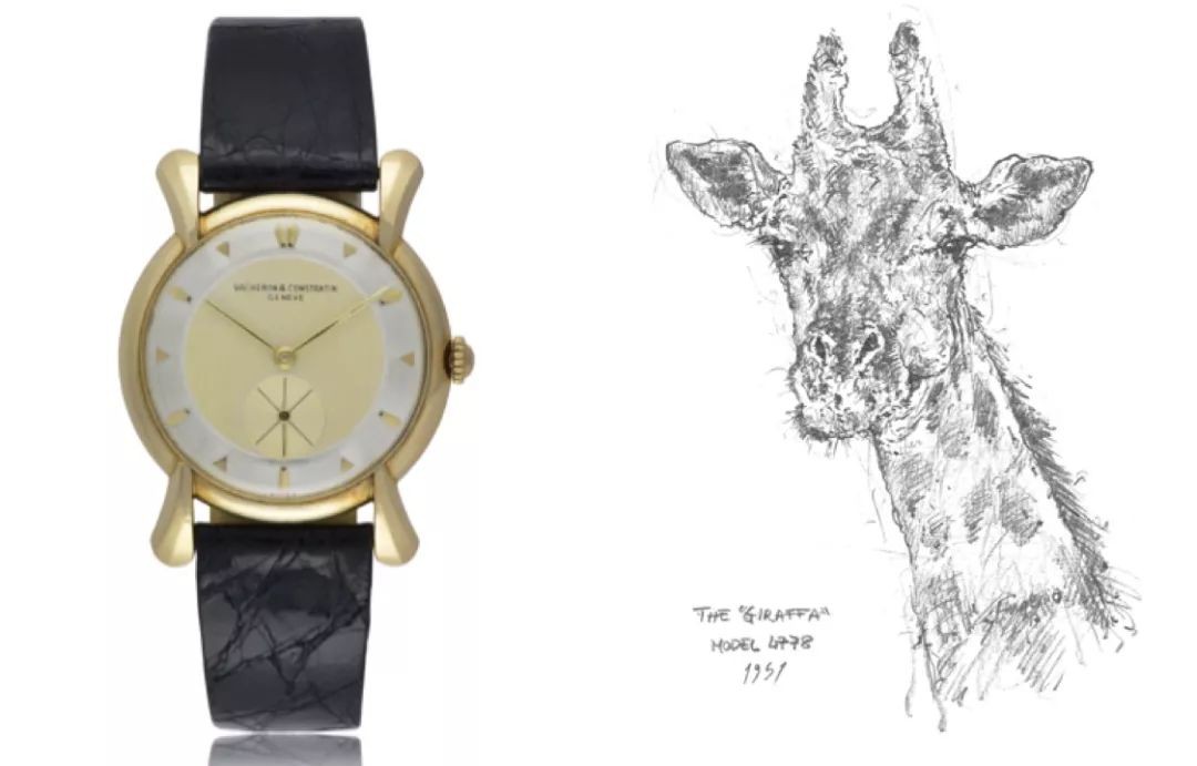 这块产于1952年的异边矩形江诗丹顿腕表,轮廓看上去像一只翩翩起舞的蝴蝶:表冠是蝴蝶的头部,而四个翼形表耳,正是蝴蝶展开的翅膀。