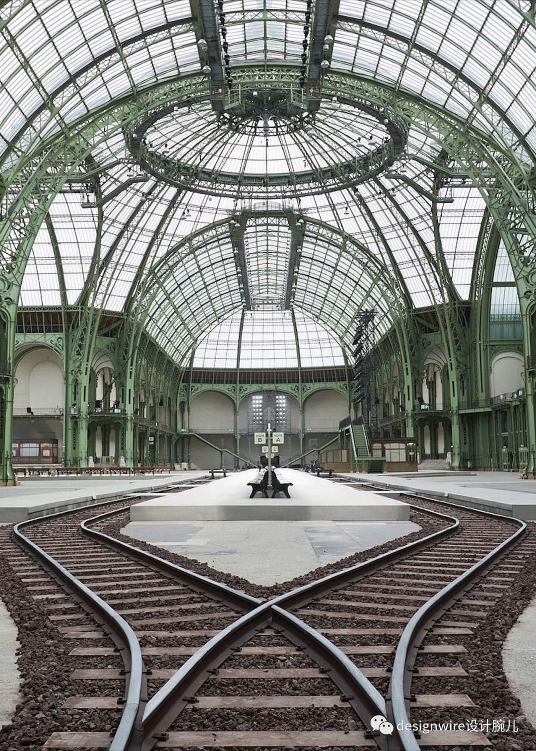 法国巴黎大皇宫在这次被布置成了一个车站,仿佛是对过去的告别也是对未来的憧憬迎接,模特沿着火车轨道两侧的站台缓缓走出。