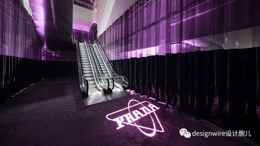 Prada 2020春夏男装时装秀秀场,AMO为东岸·民生艺术码头筒仓打造光之装置以放大其工业风格和粗犷质感。