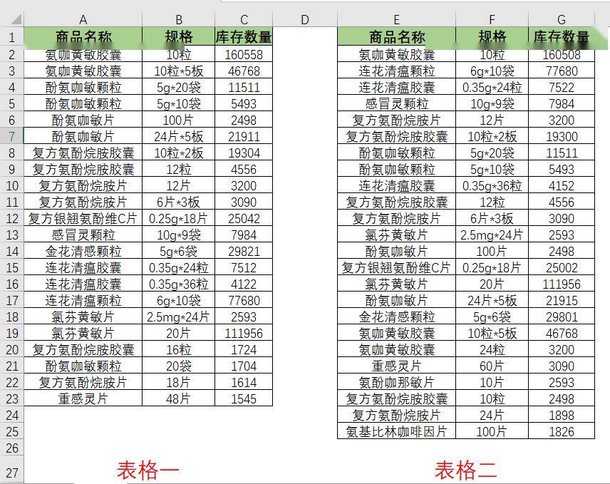 今天今天和大家分享一个核对数据的实际案例,有两份表格,如图所示。